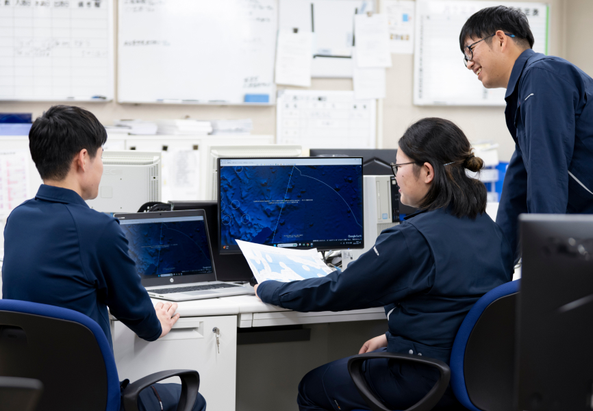 水産物の供給とともに、自社船舶を保有し、世界の海で自ら海外まき網漁船の操業を行っております。はるか遠洋から送り届けられる情報は、自社の情報化システムを介して分析され、最新の生きたデータとして活用されています。捕るだけの漁業から育てる漁業への展開。それは、水産業のこれからのあり方への挑戦 であり、独自な水産部への転身も順次図っています。漁撈部は、自社船舶である「第十八松友丸」の操業の管理をしている部署です。