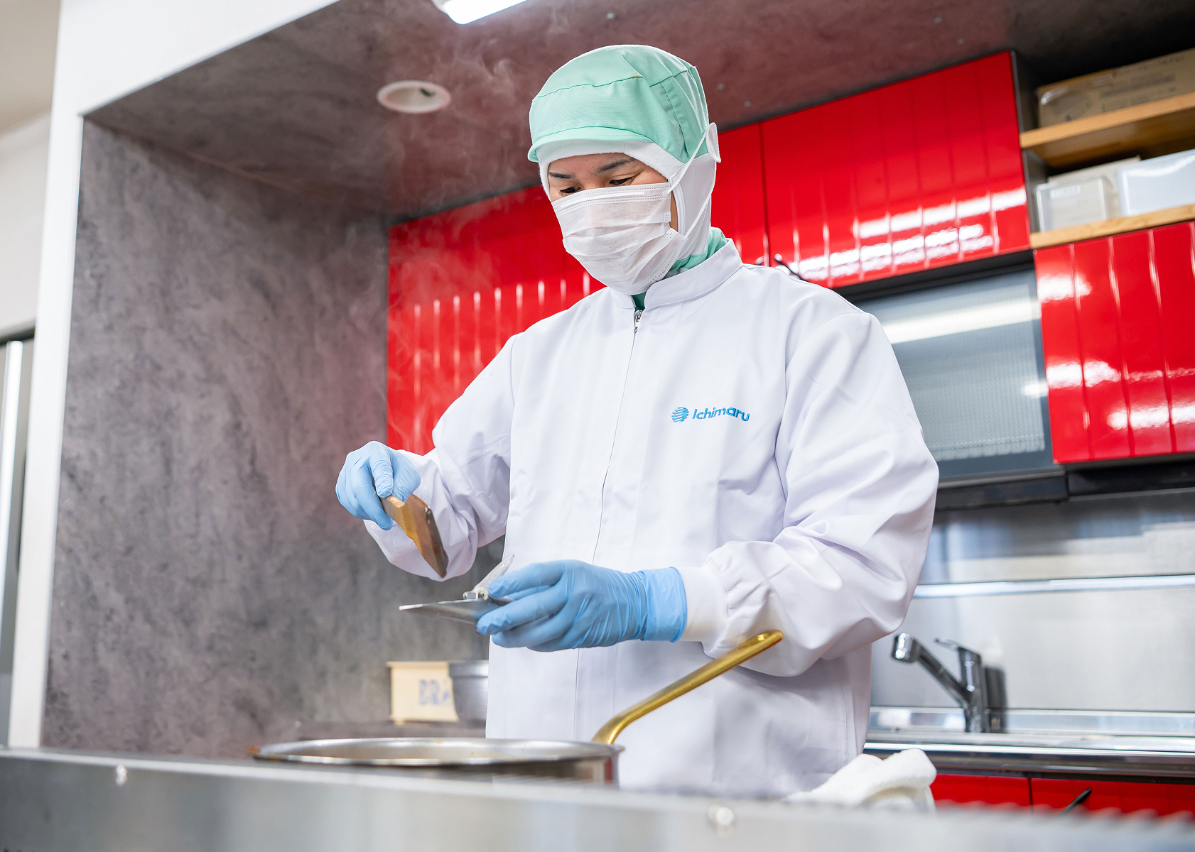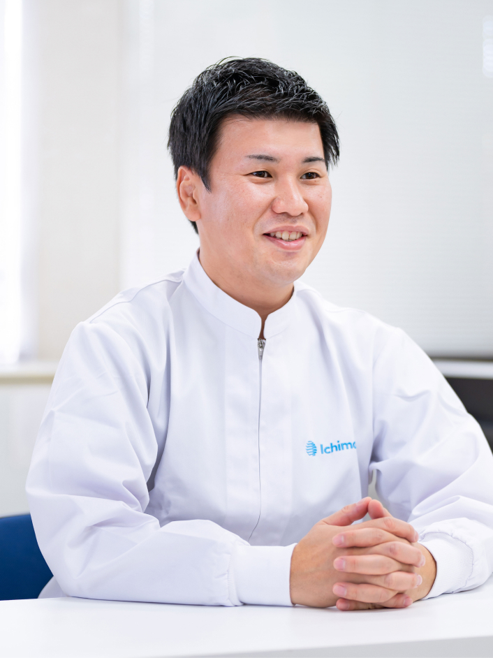私の中では、自社商品を通じて皆様が笑顔になることがやりがいに繋がります。これまで営業部→生産部→開発部を通じて商品が消費者の方まで届く過程をすべて経験することができました。お客様から「いちまるの商品は美味しい」と言って頂いたり、期待の言葉を頂けたりしたときは嬉しく思います。今後は自身でレシピ開発を行い、自社商品の魅力を伝えられるよう日々精進していきます。