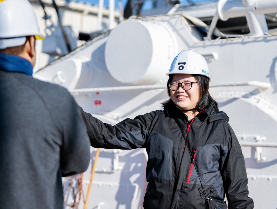入港中の対応や各種手続きを通じ、乗組員が安心して働ける環境づくりに励んでいます。日々のやり取りの中で、困ったときに頼ってもらえたり、「ありがとう」と声をかけていただけたりしたとき、自分の対応が現場の支えになっていると感じます。こうした積み重ねが、運航を支える仕事に携わっているという実感につながり、この仕事のやりがいになっています。