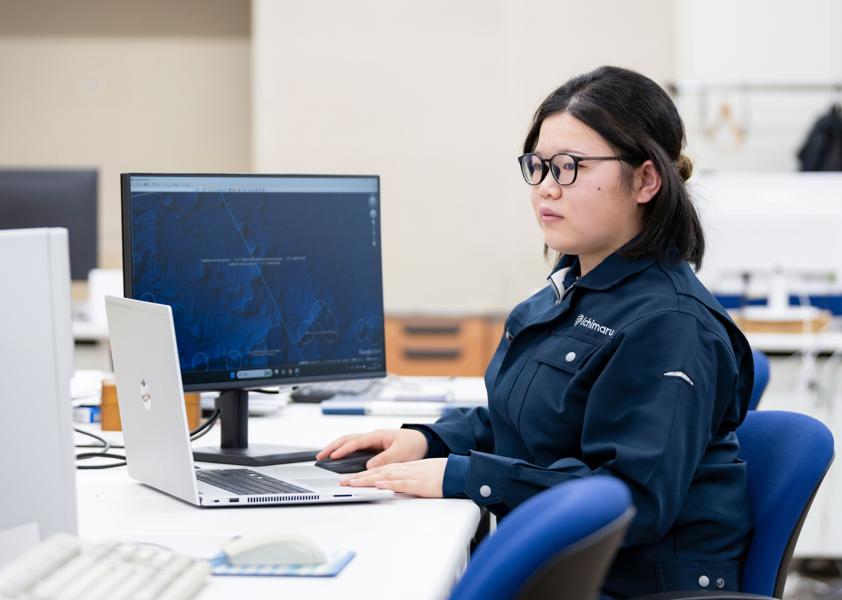 自社所有海外まき網船「第十八松友丸」の安全かつ円滑な運航を支える運航管理業務を担当しています。水揚げや資材積込時の立ち会いをはじめ、乗組員の雇入・止の手続き、健康診断の手配など、船舶及び乗組員にかかわる業務を幅広く行っています。また、入港中の船員対応の一環として、レンタカーや宿泊先の手配も行い、安定した運航体制の維持に努めています。