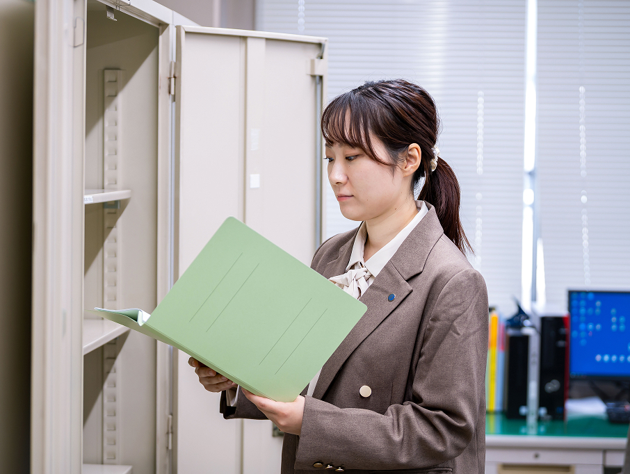 総務課に配属されてしばらくは、多岐にわたる仕事の幅に頭がパンクしそうでした。それでも、自分なりにマニュアルを作成したり、何回質問しても先輩社員が丁寧に教えてくださったおかげで、今まで出来なかった業務が出来るようになった時は、達成感があります。
